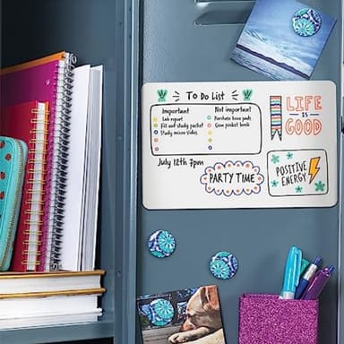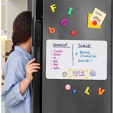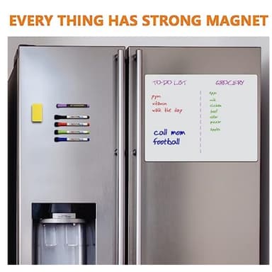 Magnetisk skrivebrett som festes på jernoverflater som kjøleskap. Perfekt for å notere gjøremål, huskelister, handlelisten eller som tegnebrett. Lett å tørke av uten å etterlate flekker. Husk å bruke tavlepenner.Les mer om produktet