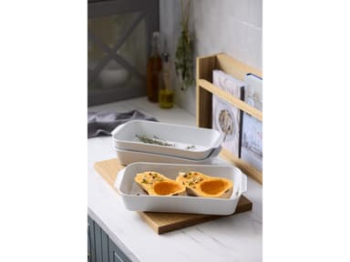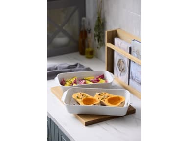 Elegant Plissé fatsett til ovnsretter og servering – inneholder to fat i størrelsen 35 x 19 x 6 cm som får plass side om side i de fleste stekeovner. Enkelt, elegant og klassiskLes mer om produktet