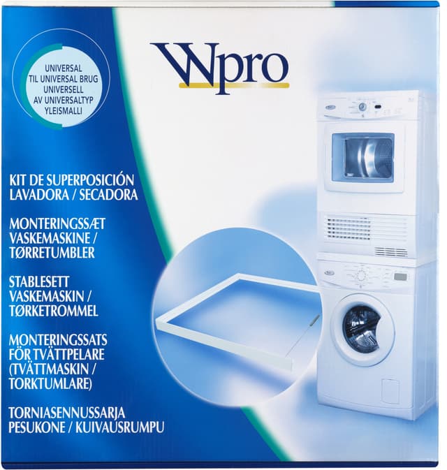 Plasser tørketrommelen over vaskemaskinen ved å ta i bruk denne stablerammen fra WPro. Dette er en meget plassbesparende løsning.Les mer om produktet