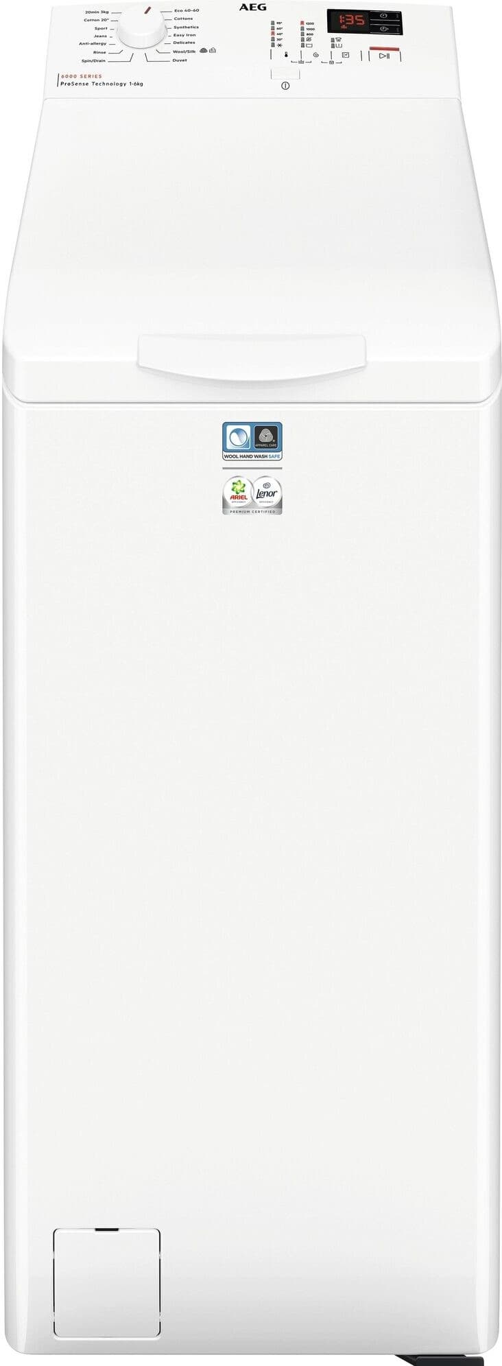 - AEG 6000-serien vaskemaskiner med toppmating har ProSense™-teknologi som veier klærne for å skreddersy hver eneste vask