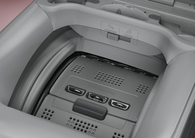 Enkel fylling og tømming av klesvasken med Soft Opening-systemet. Trykknappdeksel og myk innvendig trommeldør sørger for enkel og trygg tilgang til klærne. Og fordi åpningen er øverst kan du tydelig se innholdet.