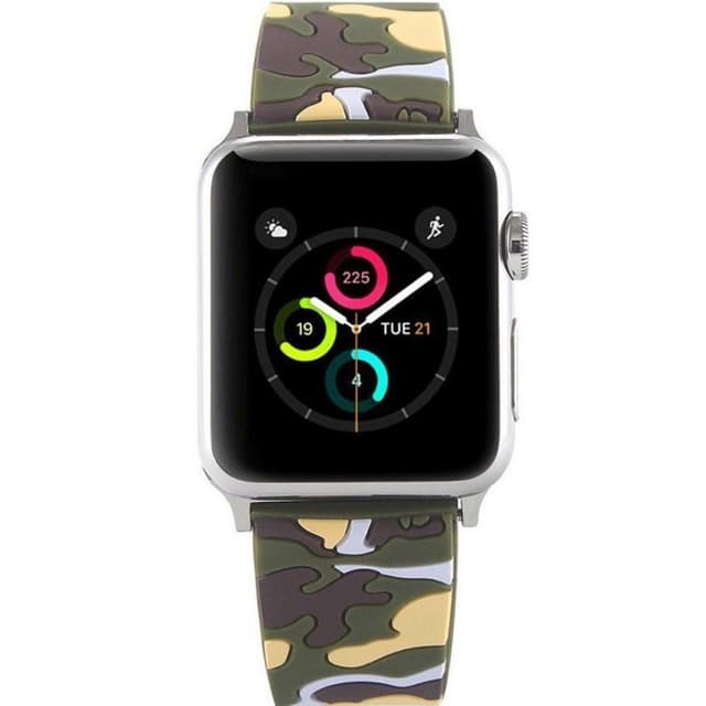 Tøft Camo silikonarmbånd til Apple Watch. Spesifikasjoner Farge: grønn Passer: Apple Watch serie 1, 2 Montering: 38mm Justerbar: 135-190mm innhold 1 x Camo armbånd 2 x parentes