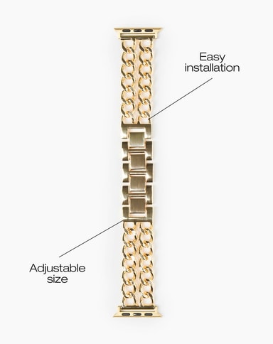 La klokken din bli en forlengelse av stilen din. Våre Chain Watch Bands kombinerer dekorativt kjededesign med smart funksjon – perfekte å bruke som de er eller stylet med våre charms. Den justerbare passformen gir komfort, mens de åpne lenkene gir uendelige muligheter for personlig uttrykk.