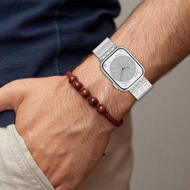 Den rustfrie stålremmen vår er utstyrt med en unik magnetisk lås, som gir en sikker og sømløs passform for din Apple Watch. Den magnetiske lukkingen sikrer en problemfri installasjon og fjerning.Les mer om produktet