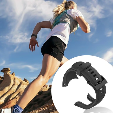 Komfortabelt sportsreim: Stroppen er laget av myk og vannavstøtende silikon og har mange ventilasjonshull som lar huden puste. Lengden justeres ved hjelp av spennen slik at klokkereimen sitter perfekt rundt håndleddet.