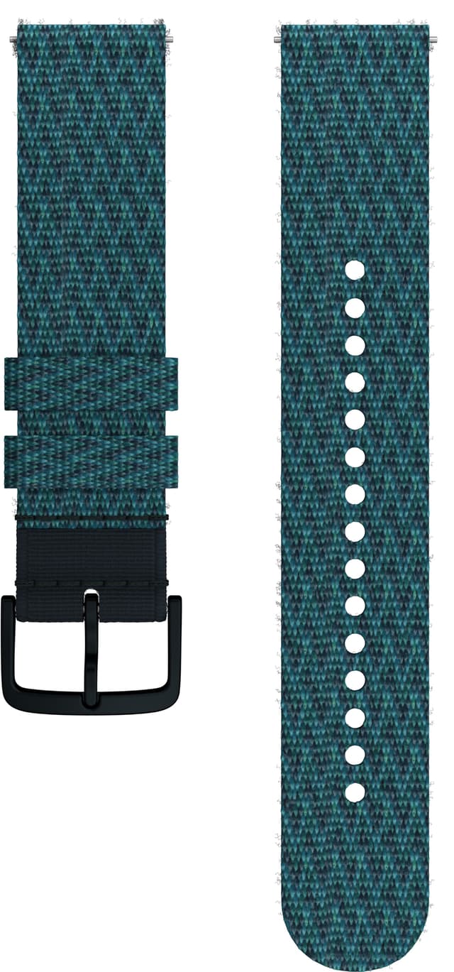 Holdbar klokkerem i tekstil laget av sjømateriale, kompatibel med hvilken som helst 20-mm Polar-klokke. Klokkeremmen kan byttes ut i løpet av sekunder med de hurtigutløsende fjærstengene.
