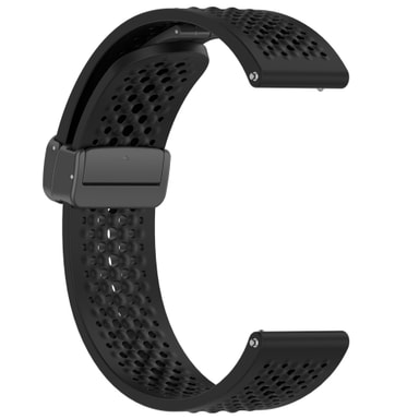 Komfortabelt silikonmateriale: Denne sporty reimen er laget av mykt og fleksibelt silikonmateriale som puster og er skånsomt mot huden. Den er perfekt for trening og andre aktiviteter der du beveger deg mye.