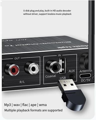 NÖRDIC Bluetooth 5.3 Audio Mottaker DAC Konverter USB Minne 3.5MM AUX RCA Coaxial