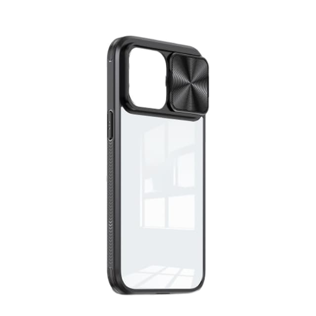Anti-fall iPhone-deksel med skyvevindu for kamerabeskyttelse Sort iPhone 15 Plus