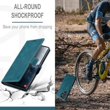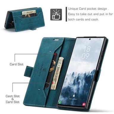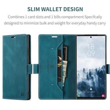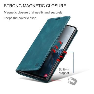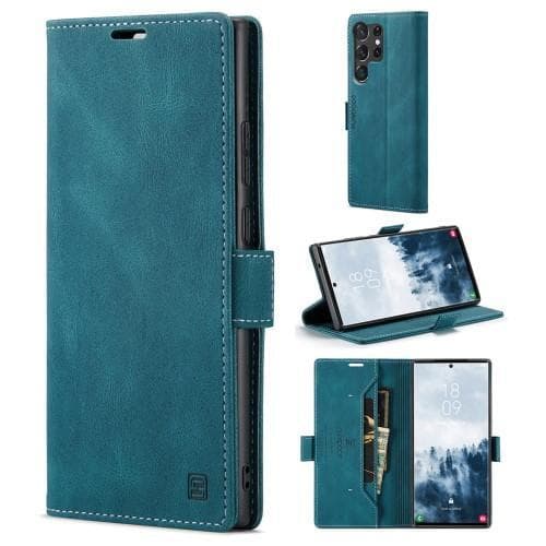 AUTSPACE A01-serien til Samsung Galaxy S23 Ultra RFID-blokkerende anti-drypptelefonveske Retro tekstur PU-lærlommebokstativ matt flip-telefonveske - blått premium PU-lær og mykt TPU-innerveske med matt struktur gir en delikat berøringsfølelse RFID-blokkeringsteknologi Har som mål å beskytte din personlige informasjon mot å bli stjålet Praktisk design, den kombinerer lommeboken og telefonvesken til en praktisk enhetsstativfunksjon for håndfri visning og lesing Auto-absorbert magnetisk lukkesystem for å holde seg inne