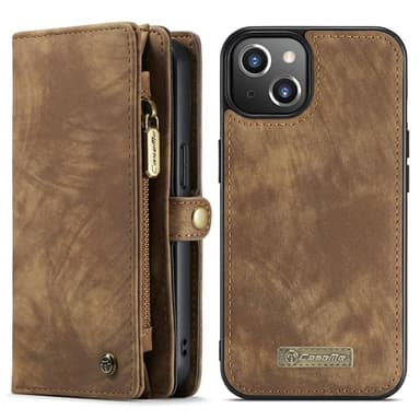 CASEME til iPhone 13 Retro Split Lærdeksel/Lommebok-deksel Flere rom - Brun Luksuriøs komplett lommebok som du samtidig kan lagre telefonen i. Elegant design som du kan lagre opptil 9 kort i. Glidelåsrom