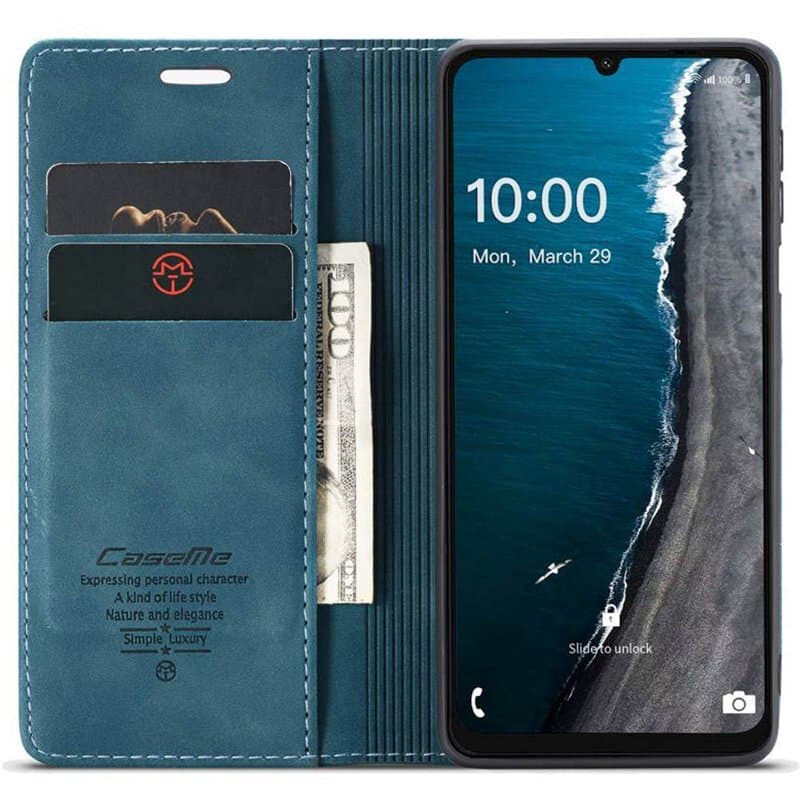 CaseMe Flip deksel kompatibel med Samsung Galaxy A07 4G er et praktisk etui og et symbol på stil og eleganse. Med flere kortspor og et separat rom for sedler, kan du enkelt oppbevare dine viktigste kort og kontanter/kvitteringer. Et skjult magnetlås sikrer at alt holdes på plass og beskytter din telefon mot riper, fall og støt.