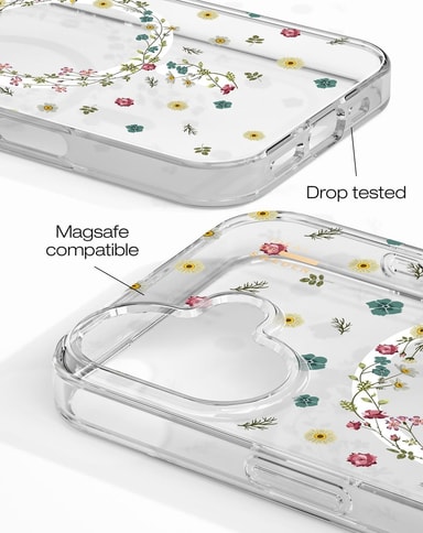 Legg til et ekstra beskyttelseslag på telefonen din og nyt et unikt laget gjennomsiktig MagSafe-deksel med blomstermønster