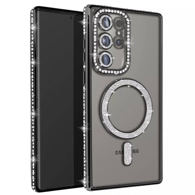 Mobildekselet er både visuelt tiltalende og funksjonelt, dekorert med glitrende strasskrystaller, noe som gir et eksklusivt og moderne utseende.