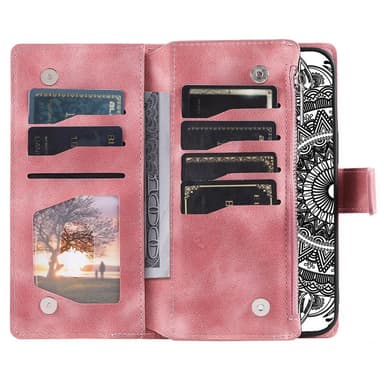 【Lommebokfunksjonalitet】 Designet med flere kortspor, en kontantholder og en glidelåslomme, gjør dette etuiet det enkelt å bære viktige kort, mynter og kontanter