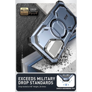 i-Blason Armorbox gir optimal beskyttelse til din telefon. Med et lag av mykt, støtdempende TPU-materiale, hardt PC-materiale og et metallkameradeksel, er dette dekselet designet for å beskytte telefonen din effektivt mot støt, fall og riper.