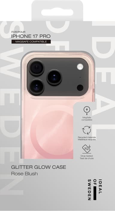 iDeal of Sweden MagSafe deksel til iPhone 17 Pro gir beskyttelse mot fall på 3 meter, sømløs trådløs MagSafe-lading og en glitrende finish som holder telefonen din stilig og sikker. Det estetiske, klare ytre er laget av resirkulerte materialer.Les mer om produktet