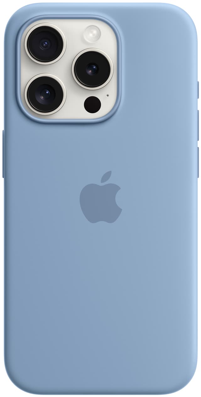 • iPhone 15 Pro Silicone deksel med MagSafe (vinterblå)