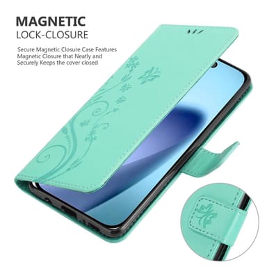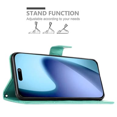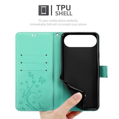 iPhone 17 AIR lommebokdeksel Blomster Case (Turkis)