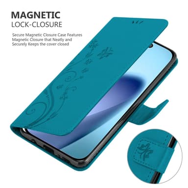 iPhone 17 lommebokdeksel Blomster Case (Blå)