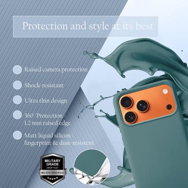 [Flytende silikon] Dette iPhone 17 PRO-etuiet er laget av flytende silikon av høy kvalitet og gir langvarig holdbarhet og en behagelig håndfølelse takket være konstruksjonen i to lag. En innvendig mikrofiberpute beskytter i tillegg hjørnene mot slitasje.