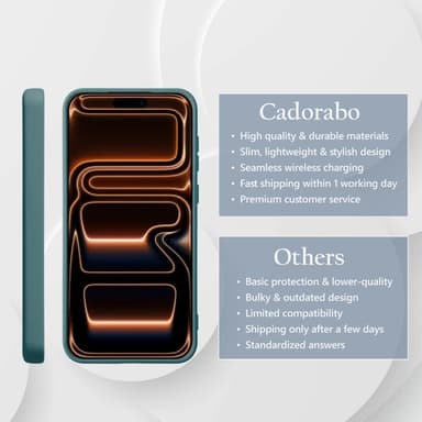 [Perfekt passform] Cadorabo-etuiet er spesielt utviklet for iPhone 17 PRO og passer perfekt til konturene. Det omslutter volumknappene, standby-knappen og enhetens kurver på en presis måte.