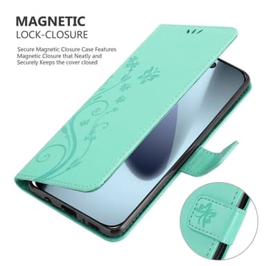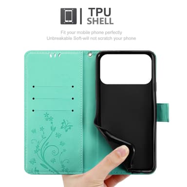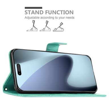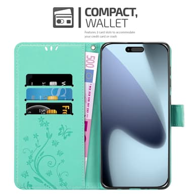 iPhone 17 PRO MAX lommebokdeksel Blomster Case (Turkis)