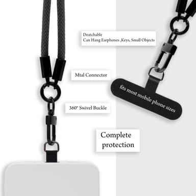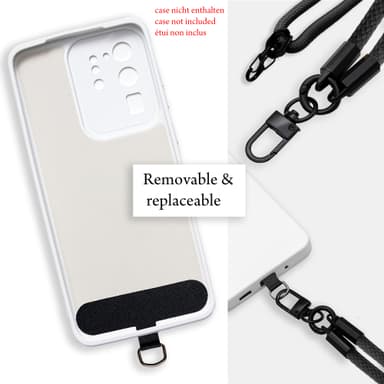 Universell mobiltelefonkjede med justerbar stropp og pute for innsetting. Takket være sin universelle design passer mobiltelefonkjeden til de fleste mobiltelefonstørrelser og -modeller. Du kan enkelt feste mobiltelefonen din til kjeden.Les mer om produktet