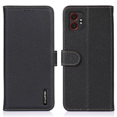 KHAZNEH For Samsung Galaxy XCover7 Pro Etui Ekte Kuskin Lær Flip Telefondeksel - SvartLaget av ekte kuskinnlær med litchitekstur, dette dekselet er slitesterkt, glatt og mykt og gir en elegant og stilig look til enheten dinDet slanke TPU-innerdekseleLes mer om produktet