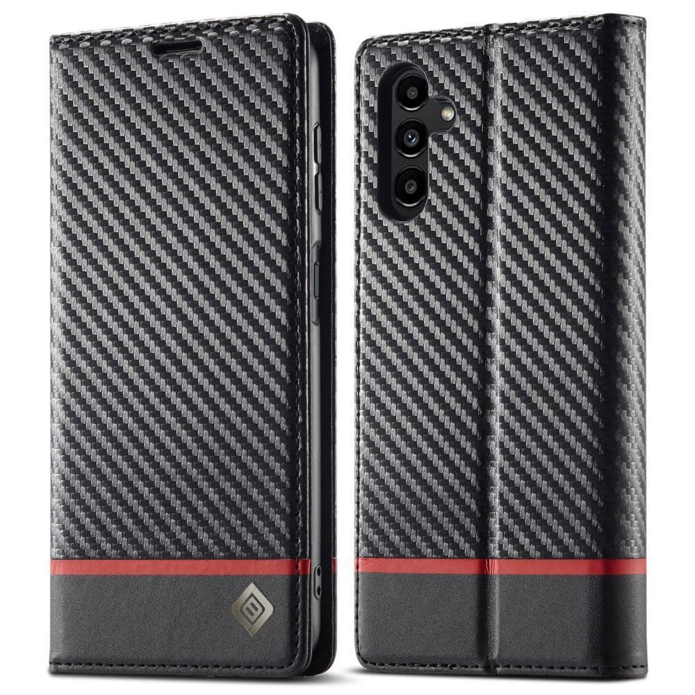 LC.IMEEKE til Samsung Galaxy A54 5G Carbon Fiber Texture Phone Flip Linn Lommebok-deksel Dråpesikkert mobiltelefonveske - Horisontal stripe Laget av PU-skinn+TPU-materiale, dekselet er tøft og holdbart. Overflaten har karbonfiberstruktur, slitesterk, støvtett og anti-fingeravtrykk. Den passer perfekt til telefonen din.