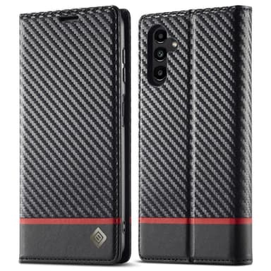 Laget av høykvalitets TPU- og PU-lærmateriale Karbonfiberteksturoverflate, stilig og ripefri Lommebok separate spor for å holde kredittkort og kontanter Auto-absorbert magnetisk lukkesystem God støtdemping og slagfasthet Hevede leppebeskyttere holder kameralinsen beskyttet på en flat overflate Enkel ett-trinns montering/avmontering Kompatibel med: Samsung Galaxy A54 5G Pakken inneholder: 1 x telefonveske Andre varer inkludert ikke