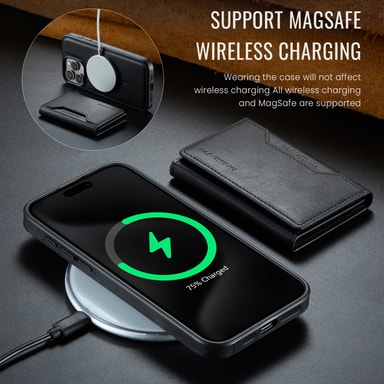 Sterk magnetisk tiltrekning: Dekselet har kraftige magneter som festes sikkert til iPhone 16 Plus, slik at telefonen og kortene dine forblir trygge og på plass.