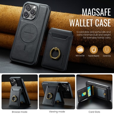 Multifunksjonell lommebokdesign: Bær viktige kort og kontanter trygt og uanstrengt med den medfølgende kortholderen som kan festes på baksiden av vesken.