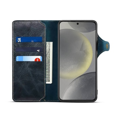 En eksklusiv og praktisk mobillommebok av ekte lær. Mobildekselet beskytter effektivt mobiltelefonen mot skitt, riper og støt. Utstyrt med kort lommer for f.eks. bankkort, ID-kort, førerkort, sedler, kvitteringer osv. Lommeboken er konstruert med tilgang til volumknapper, høyttaler, mikrofon, kamera og ladekontakt osv. Telefonen holdes på plass av en tilpasset ramme av slitesterk silikon/tpu. En magnetisk knappelås holder mobil lommeboken lukket.