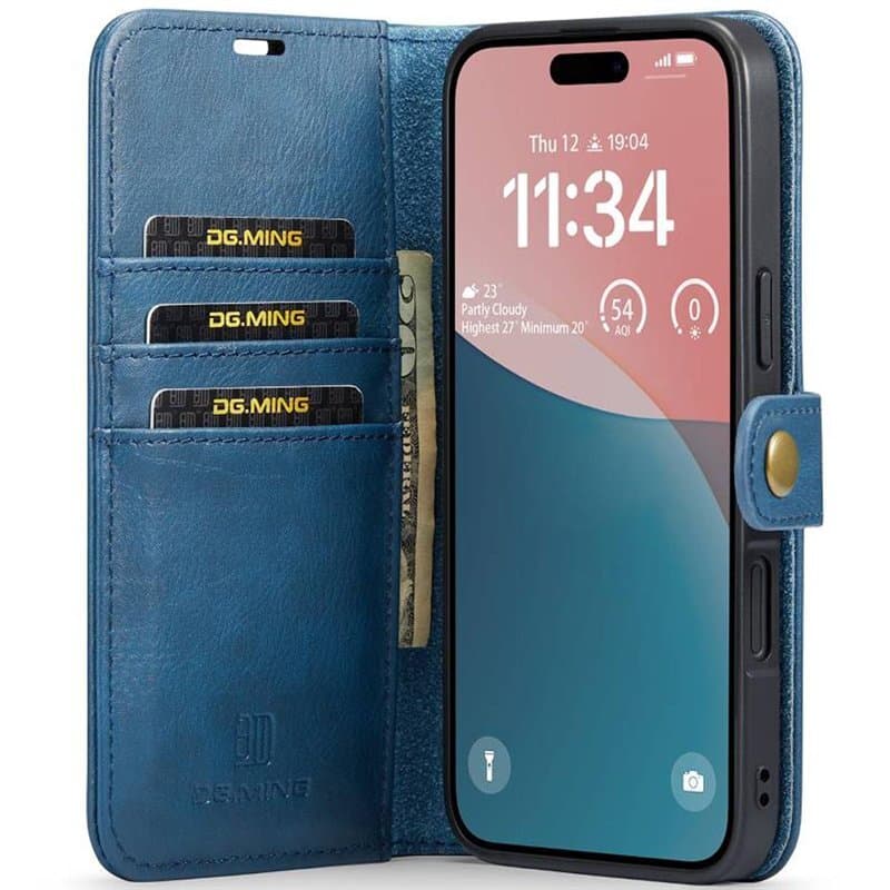 Mobildekselet har innebygde magneter som holder dekselet på plass i etuiet.