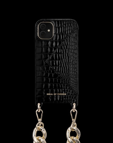 Neo Noir Croco fornyer den klassiske svarte med moderne design som bringer frem krokodillestrukturens utsøkte utseende og den svarte fargens evige dybde. Produktet er utsmykket med gulldetaljer, noe som vil gi en følelse av luksus ved enhver anledning. Den diskret konvolutt-klaffen holder med eleganse opptil to kort og produktet kan brukes som en crossbody, kjede eller på skulderen.