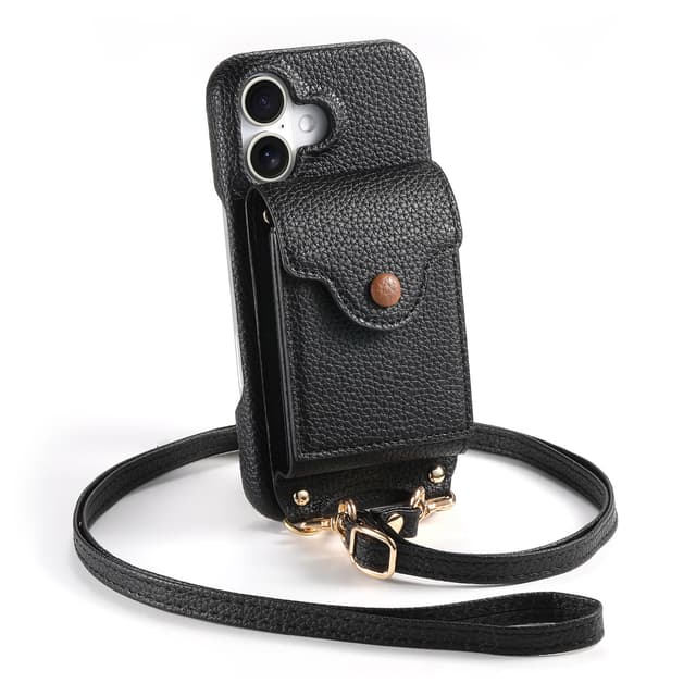 • PU Leather Lommebokdeksel med Speil og Skulderstropp kompatibelt med iPhone 15 Pro - Svart Modell 7