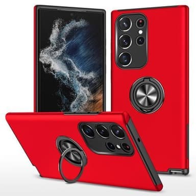 Hybrid telefonveske overalt med ringformet støttedesign til Samsung Galaxy S23 Ultra - Rød Integrert ringholder muliggjør enkel enhåndsbetjening, kan også fungere som et 360-graders roterende stativ Innebygde CD-årer metallplate kan festes til magnetisk bilholder (ikke inkludert) Spesialdesigninteriør for varmeavledning Lukkede knapper, støvdeksel og smussbeskyttelse Beskytt baksiden av telefonen mot riper Kompatibel med: Samsung Galaxy S23 Ultra Pakke Inkluderer: 1 x Finger Kickring Stå