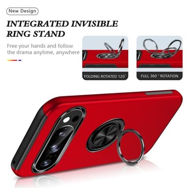 Til Pixel 10 Pro / Pixel 10 Deksel Hybriddeksel med Finger Ring - Rød