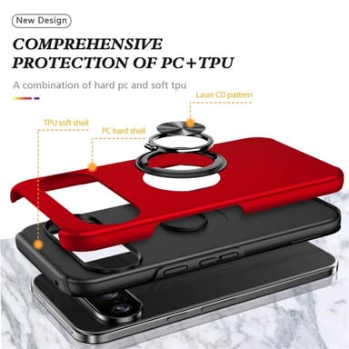 Til Pixel 10 Pro / Pixel 10 Deksel Hybriddeksel med Finger Ring - RødFulldekning hybridtelefondeksel med ringformet kickstand-design for Google Pixel Pixel 10 Pro / Pixel 10 DekselIntegrert ringholder gir enkel enhåndsbetjening og kan også fungere soLes mer om produktet