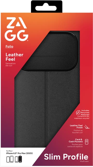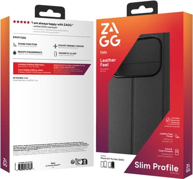 ZAGG foliodeksel til iPhone 17 Pro Max tilbyr beskyttelse mot hverdagslige fall, riper, og uhell. Nyt et faux leather-design av høy kvalitet som gir enheten din et luksuriøst utseende og elegant preg, og ta den med deg hvor som helst med ro i sinnet.Les mer om produktet