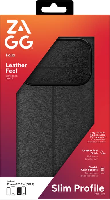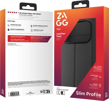 ZAGG foliodeksel til iPhone 17 Pro tilbyr beskyttelse mot hverdagslige fall, riper, og uhell. Nyt et faux leather-design av høy kvalitet som gir enheten din et luksuriøst utseende og elegant preg, og ta den med deg hvor som helst med ro i sinnet.Les mer om produktet