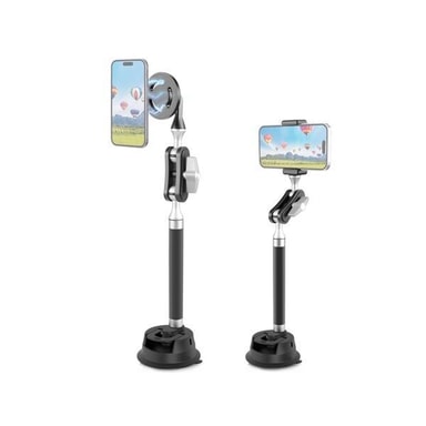 Denne mobilholderen er utstyrt med en 15,5 cm forlengelsesstang for å tilpasse seg ulike høydebehov, og kan festes på takvinduer eller andre flate overflater. Den tilbyr to tilkoblingsmetoder for mobiltelefoner: enten via en magnetisk holder eller en mobiltelefon E-klips. Sugekoppen er lett å håndtere, og kan festes til en flat, ren overflate ved å snu adsorpsjonsbryteren. Den modulære kombinasjonen gjør den enkel å brette sammen og oppbevare, noe som gjør den enkel å ta med deg. Mobilholderen kan støtte bruk med sportskameraer, speilløse kameraer, mobiltelefoner, nettbrett, campinglys og andre enheter.