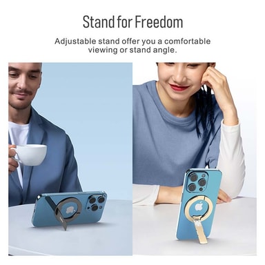 360° rotasjon og sammenleggbar: Oppnå den perfekte visningsvinkelen med 360° rotasjonsfunksjonen til vår magnetiske telefonholder. Bytt enkelt mellom stående og liggende modus, slik at du kan tilpasse seeropplevelsen for enhver applikasjon. Den sammenleggbare designen gjør den utrolig bærbar og enkel å oppbevare, ideell for reiser eller bruk på farten. Kompatibel med forskjellige telefonmodeller, inkludert iPhone, Samsung og Huawei (når den brukes med den medfølgende magnetiske ringen), tilpasser dette stativet seg dine behov, og gir optimal fleksibilitet og bekvemmelighet. Den kompakte formfaktoren sørger for at den ikke tar opp verdifull plass i vesken eller på skrivebordet.
