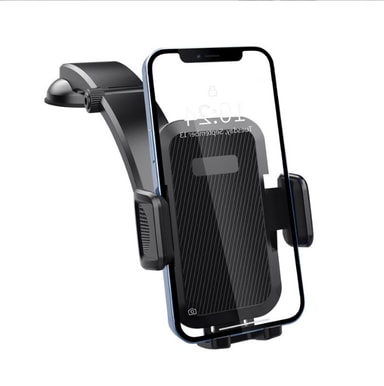 Sikkert og stabilt grep: Denne biltelefonholderen har en robust design med et sterkt grep for å holde telefonen sikker selv på humpete veier. Holderens armer og base er polstret med anti-skli silikon for å forhindre riper og gi ekstra stabilitet.