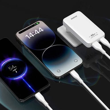 Dudao GaN USB-reiselader 65 W med USB og USB-C PD - hvitLes mer om produktet