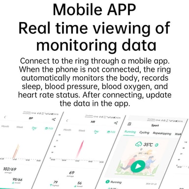 Sømløs tilkobling: Koble smartringen til Smart Health-appen via Bluetooth 5.2 for å synkronisere sanntidsdata for personlig innsikt og praktisk kontroll over enhetsinnstillinger.