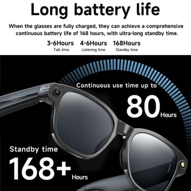 Høykvalitets lyd og video: Fang øyeblikkene i krystallklar kvalitet med det integrerte 8MP HD-kameraet og 1200P anti-shake videoopptak. Det doble systemet for reduksjon av mikrofonstøy sikrer klar lyd under samtaler og opptak, selv i støyende omgivelser. De doble øretelefonene med retningsbestemt surroundlyd gir en oppslukende lydopplevelse samtidig som de beskytter personvernet ditt. Perfekt for å ta bilder, spille inn videoer eller nyte musikk mens du er på farten. Disse brillene er kompatible med Bluetooth-enheter, slik at du enkelt kan koble dem til smarttelefonen eller nettbrettet ditt.