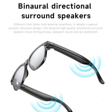 Høykvalitets lyd og video: Fang øyeblikkene i krystallklar kvalitet med det integrerte 8MP HD-kameraet og 1200P anti-shake videoopptak. Det doble systemet for reduksjon av mikrofonstøy sikrer klar lyd under samtaler og opptak, selv i støyende omgivelser. De doble øretelefonene med retningsbestemt surroundlyd gir en oppslukende lydopplevelse samtidig som de beskytter personvernet ditt. Perfekt for å ta bilder, spille inn videoer eller nyte musikk mens du er på farten. Disse brillene er kompatible med Bluetooth-enheter, slik at du enkelt kan koble dem til smarttelefonen eller nettbrettet ditt.