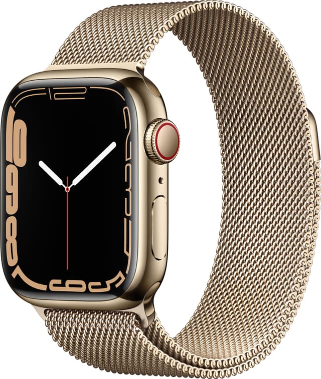 • Apple Watch Series 7 41mm GPS+eSIM (gullfarget stål/gullfarget Milanese-reim)